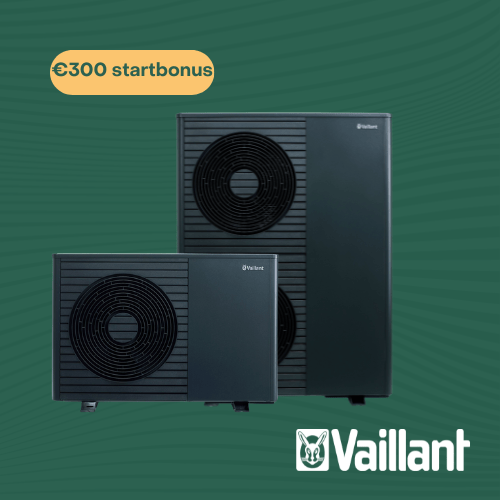 Ontvang nu €300 startbonus op je eerste nieuwe aroTHERM pro of aroTHERM plus. Pre-order of bestel een nieuwe generatie warmtepomp van Vaillant en krijg €300 cashback. Hoe het werkt? Bestel je eerste nieuwe warmtepomp via Alius. Registreer het artikel na installatie via https://www.myvaillantpro.nl/acties en claim je startbonus! Bekijk hier de volledige actievoorwaarden.